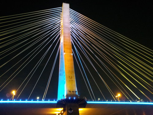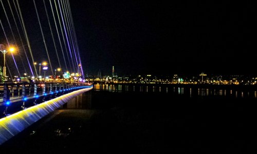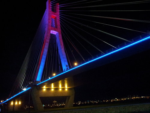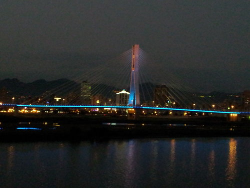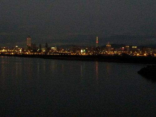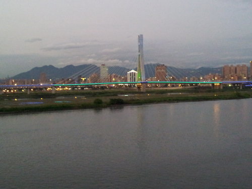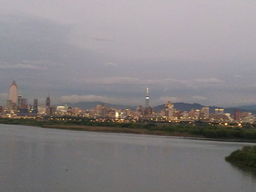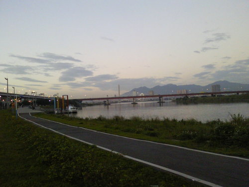 本想追夕陽看日落; 奈下班晚了只有趕在天黑前到新北橋,試試手機拍拍夜景;