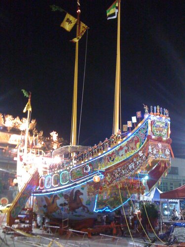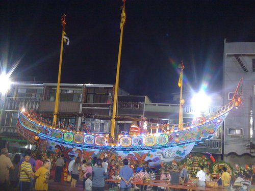 茄萣王船文化 高雄市臨海最北邊的茄萣區,小鎮大事熱心好友提供照片讓我參與這有意義的活動。 茄萣區四大廟宇八至十二年舉辦建醮活動,王醮大典兩部分,王醮大典又有藝陣、 送王(燒王船)祭儀。 四大廟宇白砂崙萬福宮、頂茄萣賜福宮、下茄萣金鑾宮和崎漏正順廟, 舉辦建醮活動,燒王船和地方文武陣頭獨樹一格,高市歷史博物館將對 茄萣王船文化展開無形文化資產評估工作。 希望這民俗活動得以傳承和保存。 壯麗的王船- 花一年籌備打造